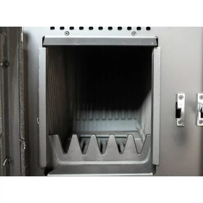 La cuisinière est équipée d’un système de double combustion : l’air secondaire permet de brûler les gaz résiduels issus de la première combustion, améliorant ainsi le rendement tout en réduisant les pertes de chaleur. Cela se traduit par moins de consommation de bois pour un confort identique, et un foyer plus propre au quotidien.