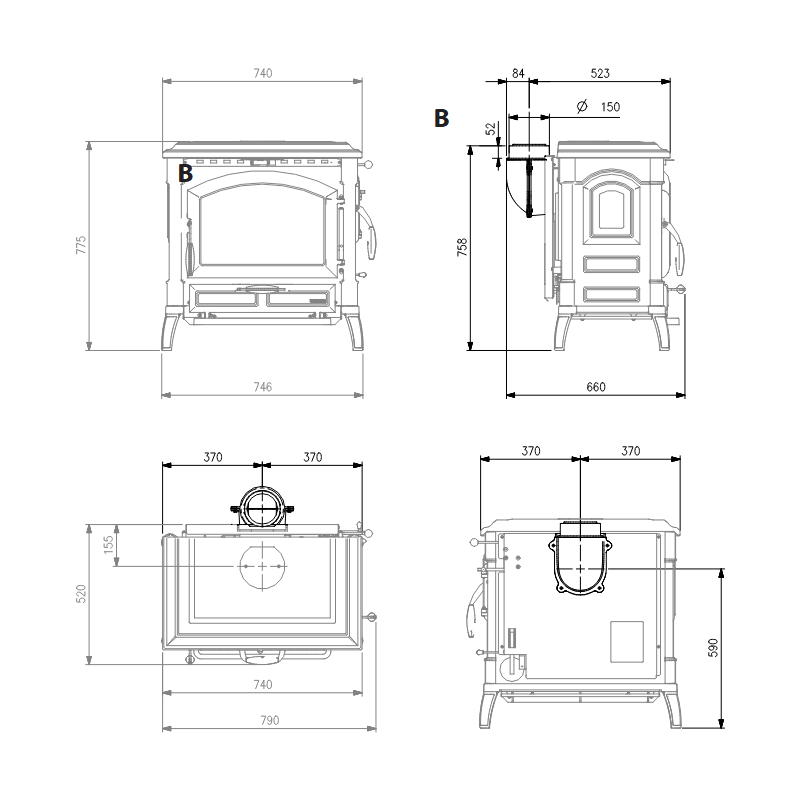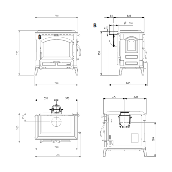 Entièrement conçu en fonte émaillée, l’Isotta.16 se distingue par sa solidité et sa longévité. Sa structure massive de 205 kg et ses dimensions généreuses (790x775x660 mm) en font un appareil capable de diffuser une chaleur douce et homogène sur de longues périodes. Son design classique s’intègre parfaitement dans des intérieurs au style traditionnel ou contemporain.