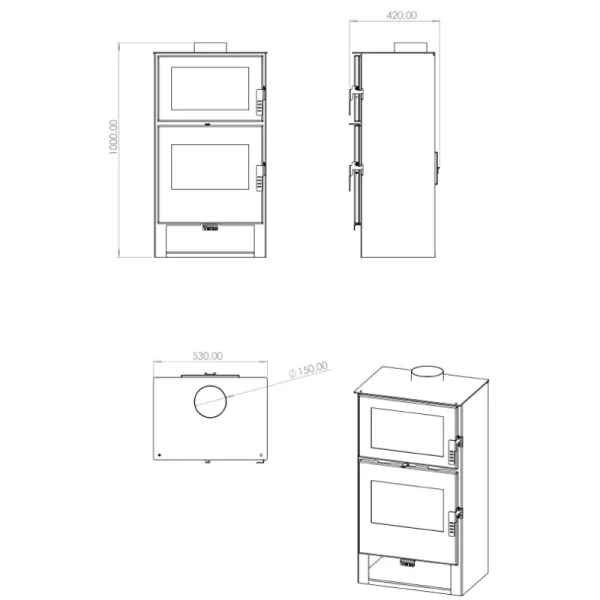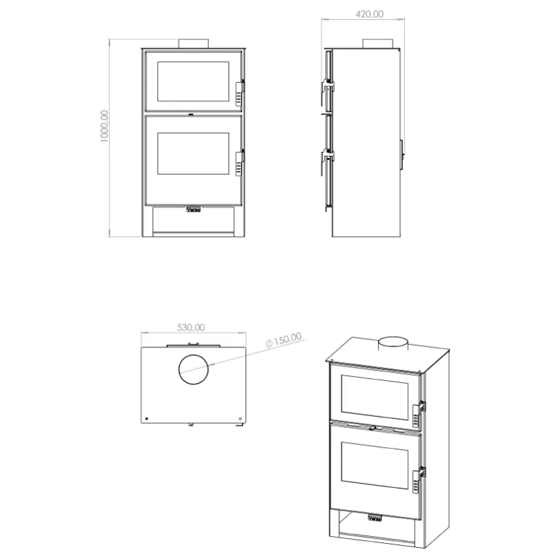 Ce poêle est livré avec une grille de cuisson et un thermomètre à accrocher pour vous offrir une expérience culinaire complète. Le cendrier amovible facilite l’entretien en collectant les cendres en un point accessible, tandis que l’espace de rangement intégré permet d’organiser vos bûches ou accessoires. La vitre céramique haute température garantit une vue dégagée sur les flammes et réduit l’entretien grâce à sa résistance aux dépôts de suie.